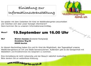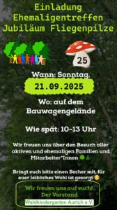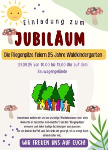 Hallo liebe Waldleute!Wow, 25 Jahre voller Krabbelpfade, Baumhütten, Entdeckungen und staunender Augen! Matschhosen, Abenteuer und Elterneinsatz!Wir laden dich herzlich ein, dieses Wald-Jubiläum mit uns zu feiern: als Gründungsmitglied, Kooperationspartner oder einfach als Mensch, der den Duft von Kiefernnadeln liebt.Was Euch erwartet:• Kurze Rede: Wie alles begann – mit viel Kaffee, Ideen und Mut• Wald-Spiel-Ecke: Schaut …